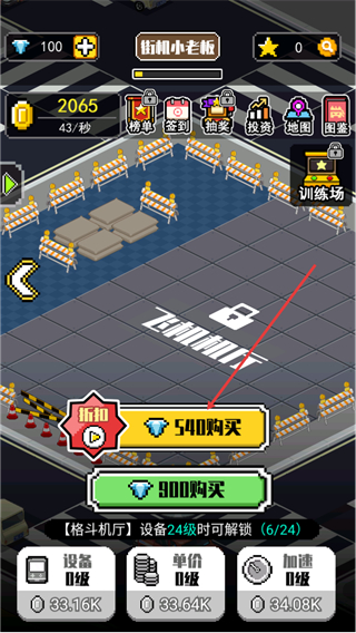 4、在拓展機廳時,若未滿足格斗機廳的解鎖條件,可點擊折扣540購買按鈕,消耗對應鉆石提前獲取該機廳,加快機廳的拓展進度。