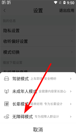 4、點擊無障礙模式選項,即可完成喜馬拉雅無障礙模式開啟任務。