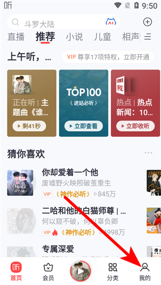 1、在喜馬拉雅首頁,點擊相聲評書選項,進入相聲評書分類頁面。