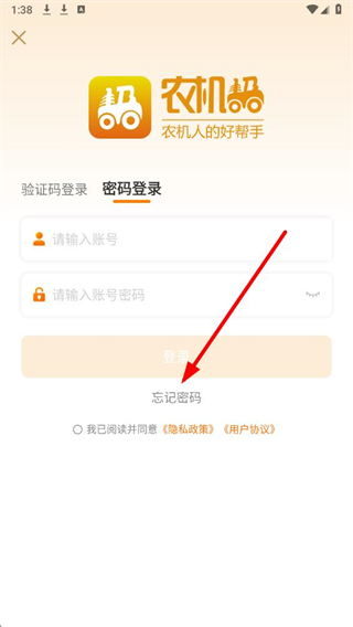3、在密碼登錄頁面,點擊忘記密碼選項,跳轉至忘記登錄密碼找回頁面。