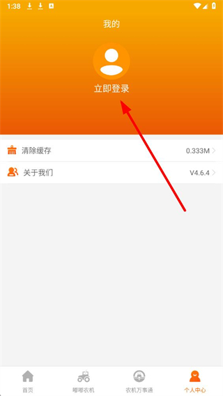 1、在農機幫個人中心頁面,點擊立即登錄,進入登錄選擇界面。