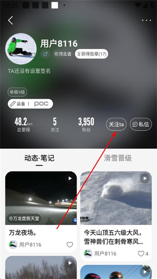 3、進入該用戶的主頁后,點擊關注ta,完成好友添加。