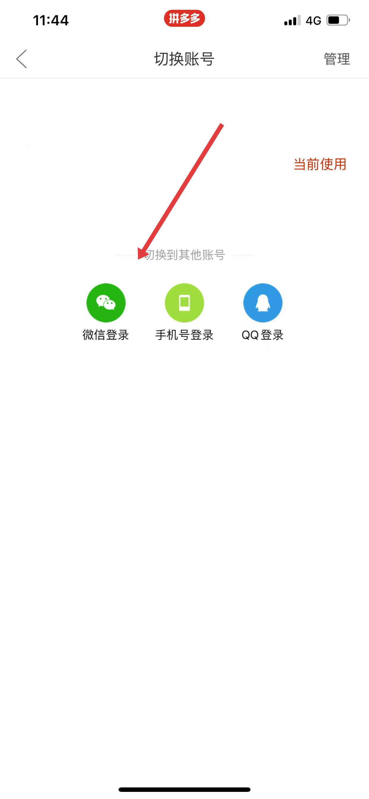 3、在切換賬號頁面,選擇切換到其他賬號,接著按需選微信、手機號或QQ登錄,完成新登。
