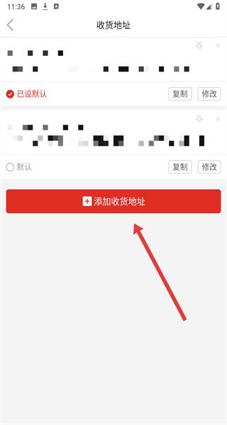 3、在進入到收貨地址頁面中,可以點擊下方添加收貨地址按鈕,進行添加設置收貨地址。