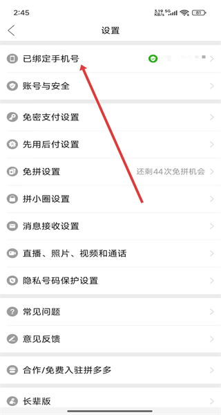 1、在拼多多設置頁面點擊“已綁定手機號”,進入綁定手機號頁面。
