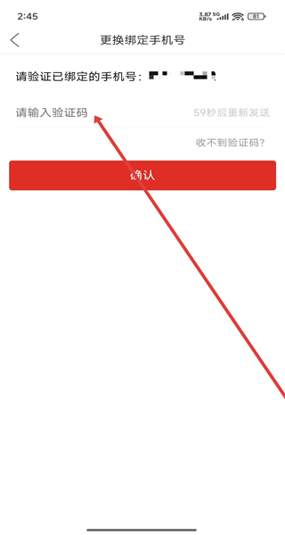 3、輸入原綁定手機號的驗證碼,點擊“確認”。
