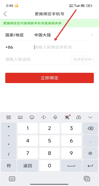 4、輸入新的手機號碼,獲取驗證碼后點擊“立即綁定”,完成手機號更換綁定流程。