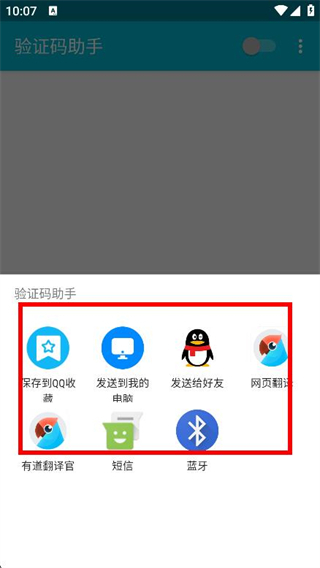3、選擇分享渠道,即可將驗證碼助手分享給好友。