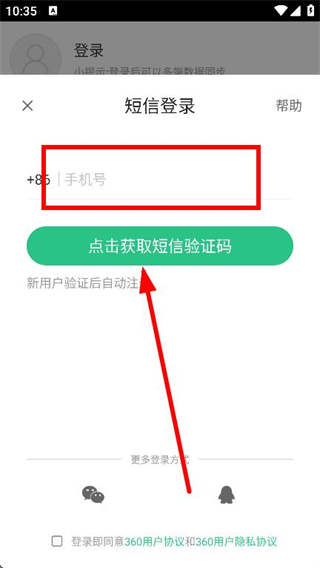 4、在輸入框填入收到的短信驗證碼,即可完成手機號登錄。